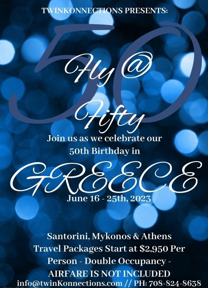 Attire: twinKonnections T-Shirt (any bottom). T-Shirts will be provided to each person in Greece.